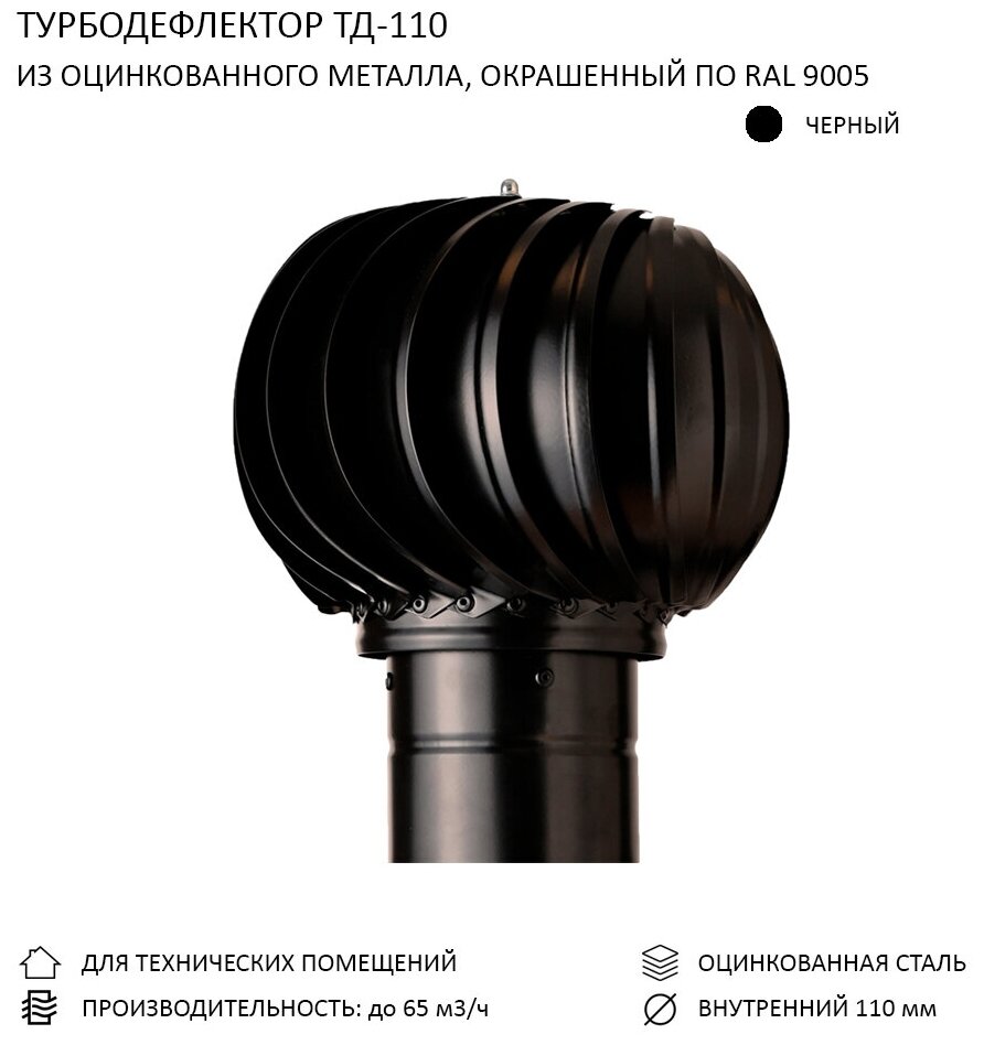 Комплект активной вентиляции: Турбодефлектор TD110, вент. выход 110 не утепленный, для скатной кровли, черный интересное: