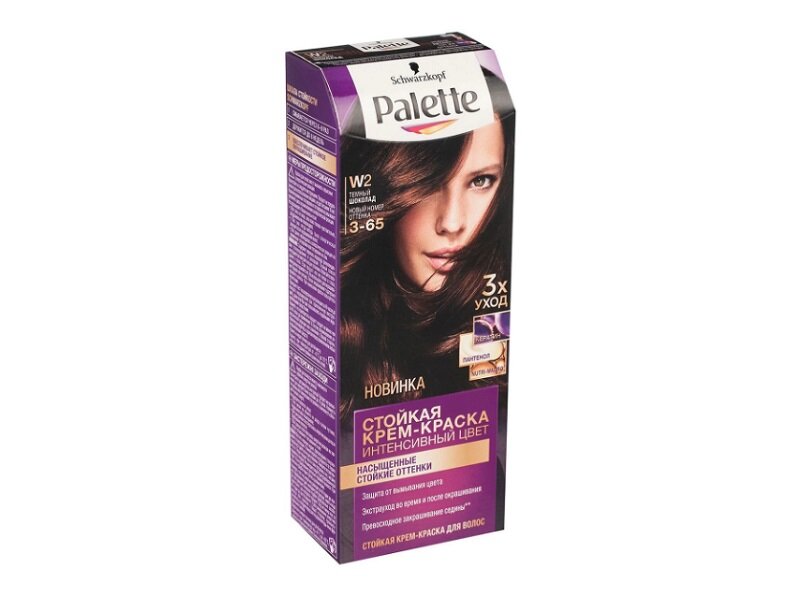 Палетт Стойкая крем-краска Интенсивный цвет, W2 3-65 Темный шоколад, 110 мл - 3 шт