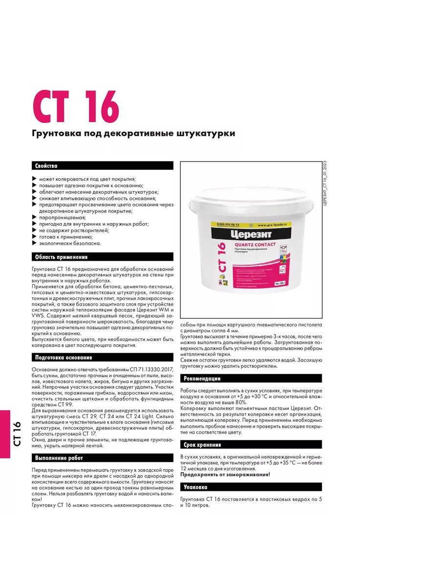 Грунт Церезит СТ16 под декоративную штукатурку 10 л