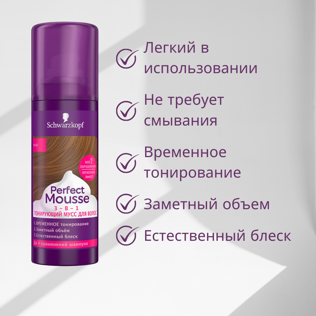 Perfect Mousse Тонирующий мусс 3-в-1, Русый, временное тонирование, 120 мл