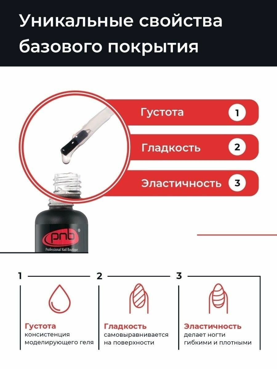 PNB Fiber Base цветная камуфлирующая укрепляющая база для ногтей и гель-лака UV/LED бело-молочная 30 мл