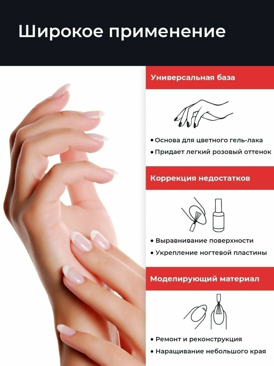 База с нейлоновыми волокнами/база для ногтей/базовое покрытие/база для маникюра и педикюра молочная Fiber Base, 30 мл