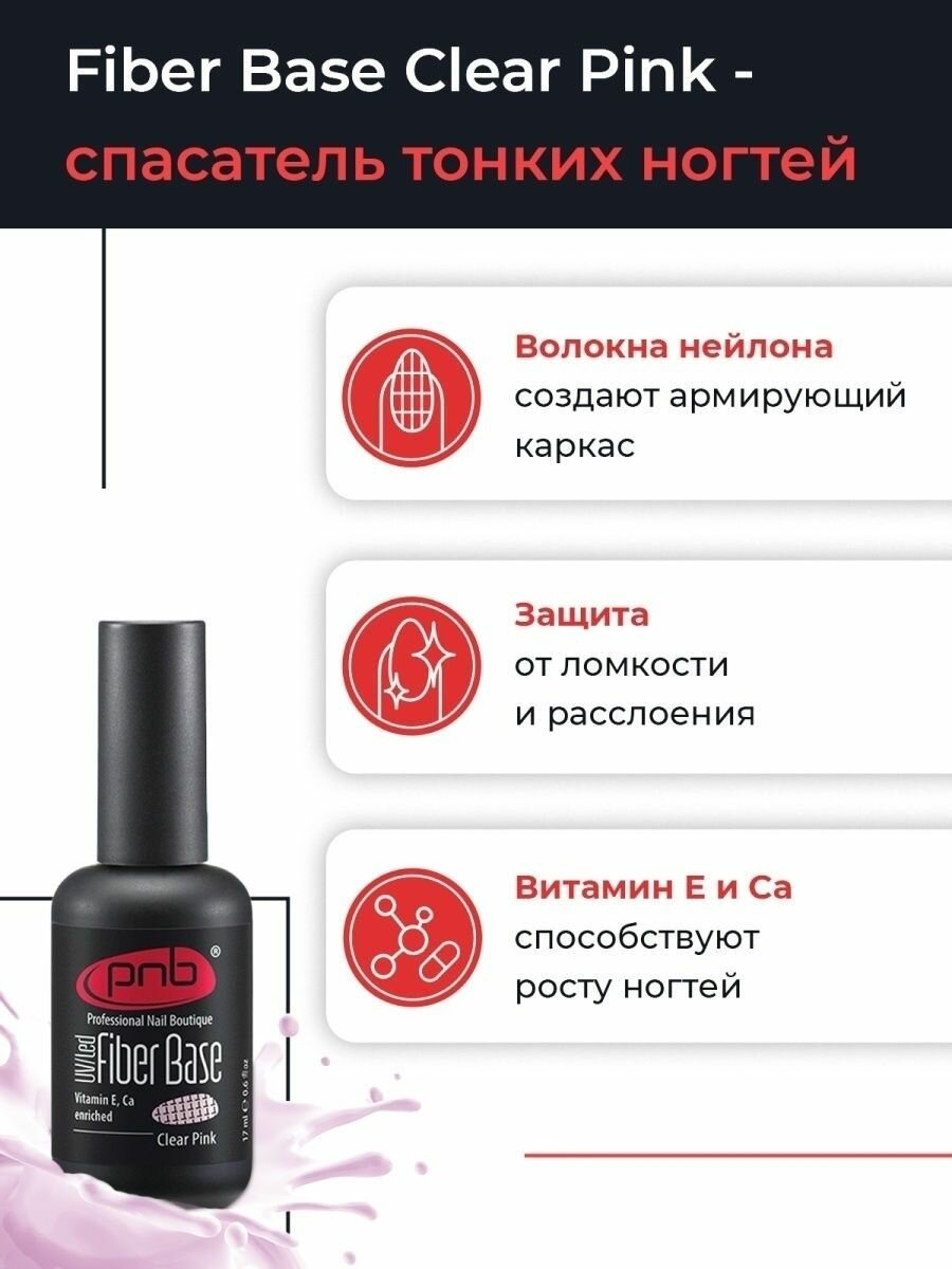 PNB базовое покрытие Fiber Base, CLEAR PINK, 17 мл