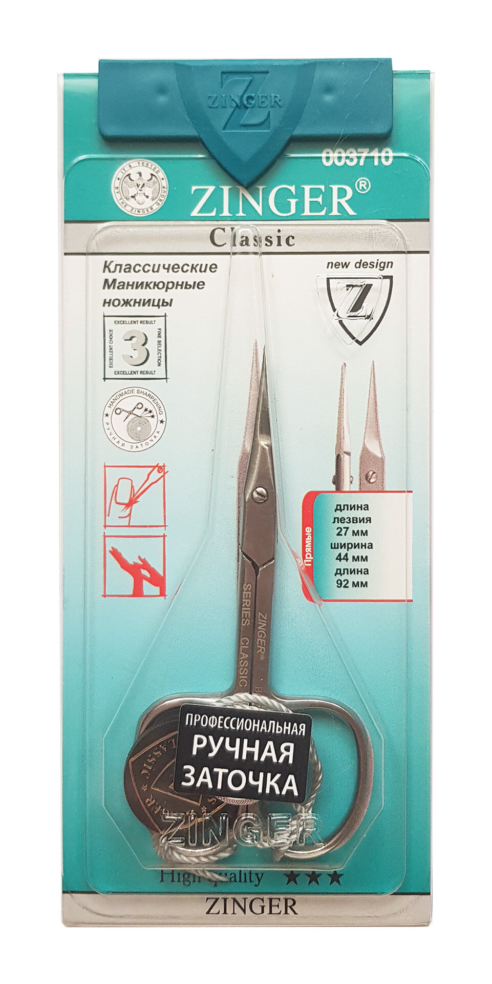 ZINGER Ножницы маникюрные, для кутикулы, прямые, 9,5 см, цвет серебристый, B-117-S-SH