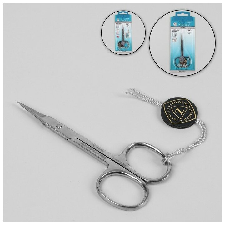 Ножницы маникюрные, для кутикулы, прямые, 9,5 см, цвет серебристый, B-117-S-SH ZINGER 1329812 .
