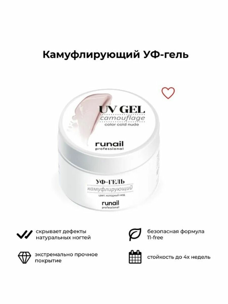 RuNail, камуфлирующий УФ-гель (холодный нюд), 15 гр