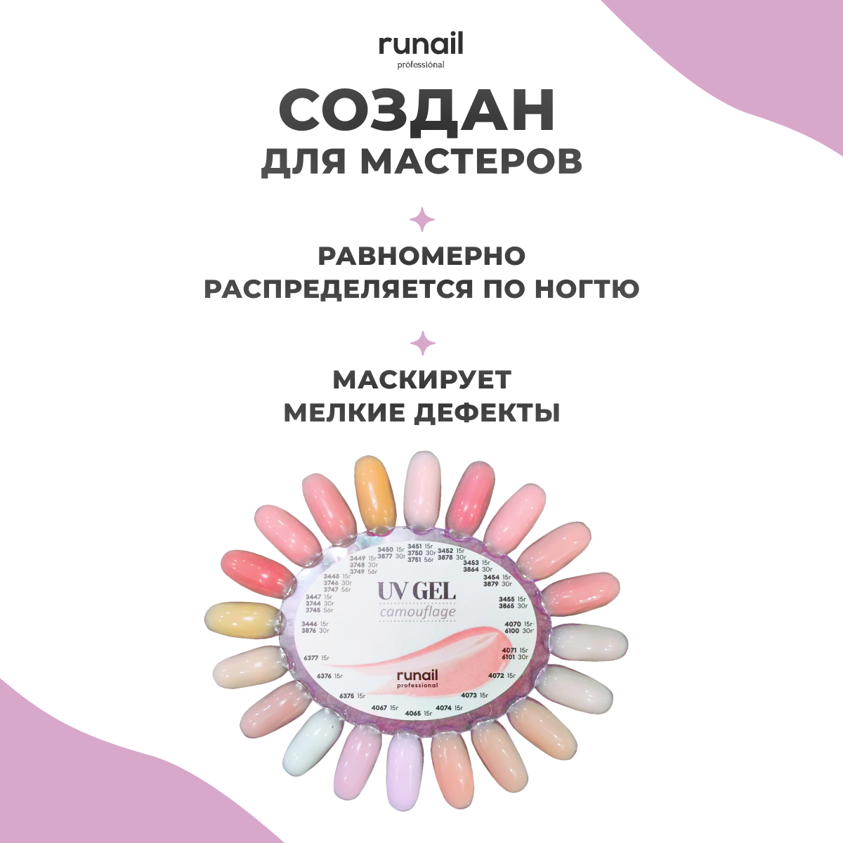 RUNAIL, Камуфлирующий УФ-гель, лавандовый рассвет, 15 г