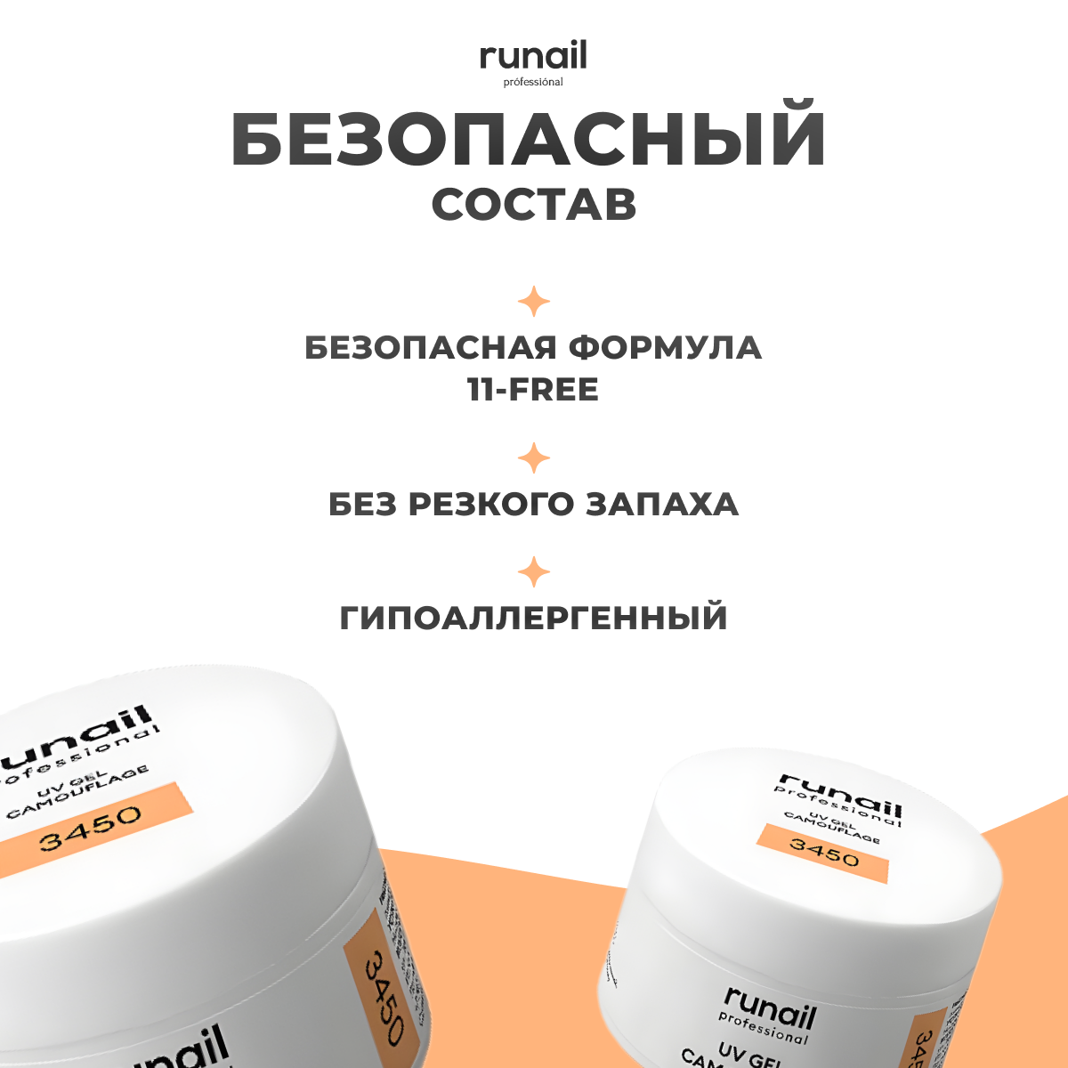 Гель камуфлирующий 3450 ruNail (персиковая нежность) 15 мл