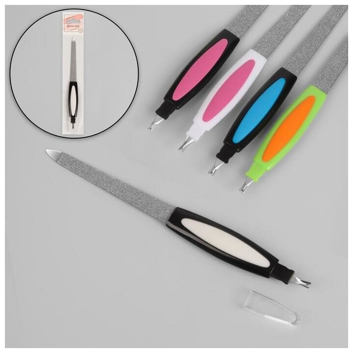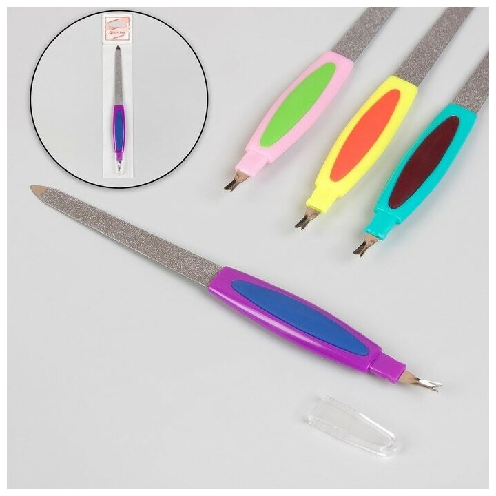 Купить Пилка-триммер металлическая для ногтей, прорезиненная ручка, с защитным колпачком, 17 см, цвет микс
