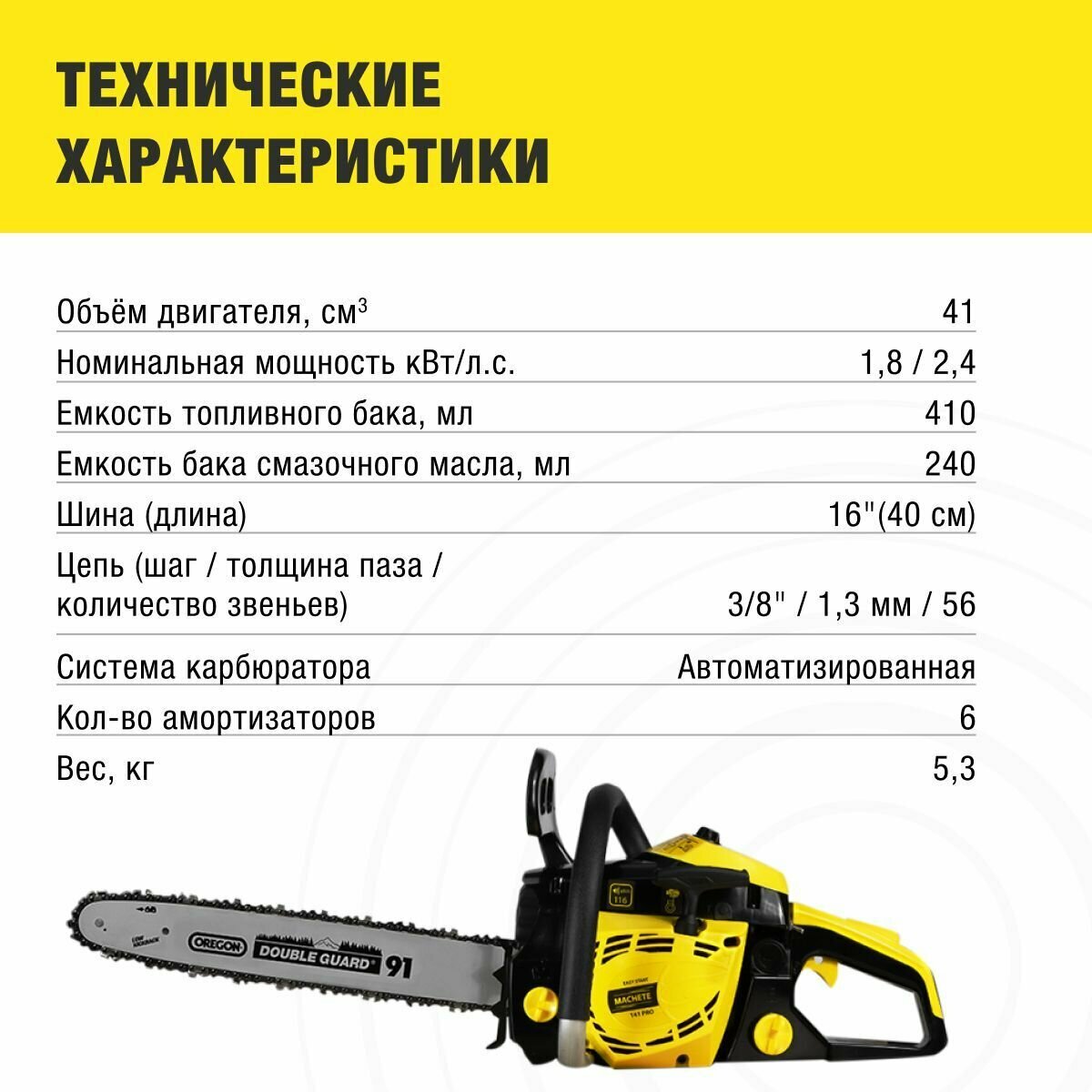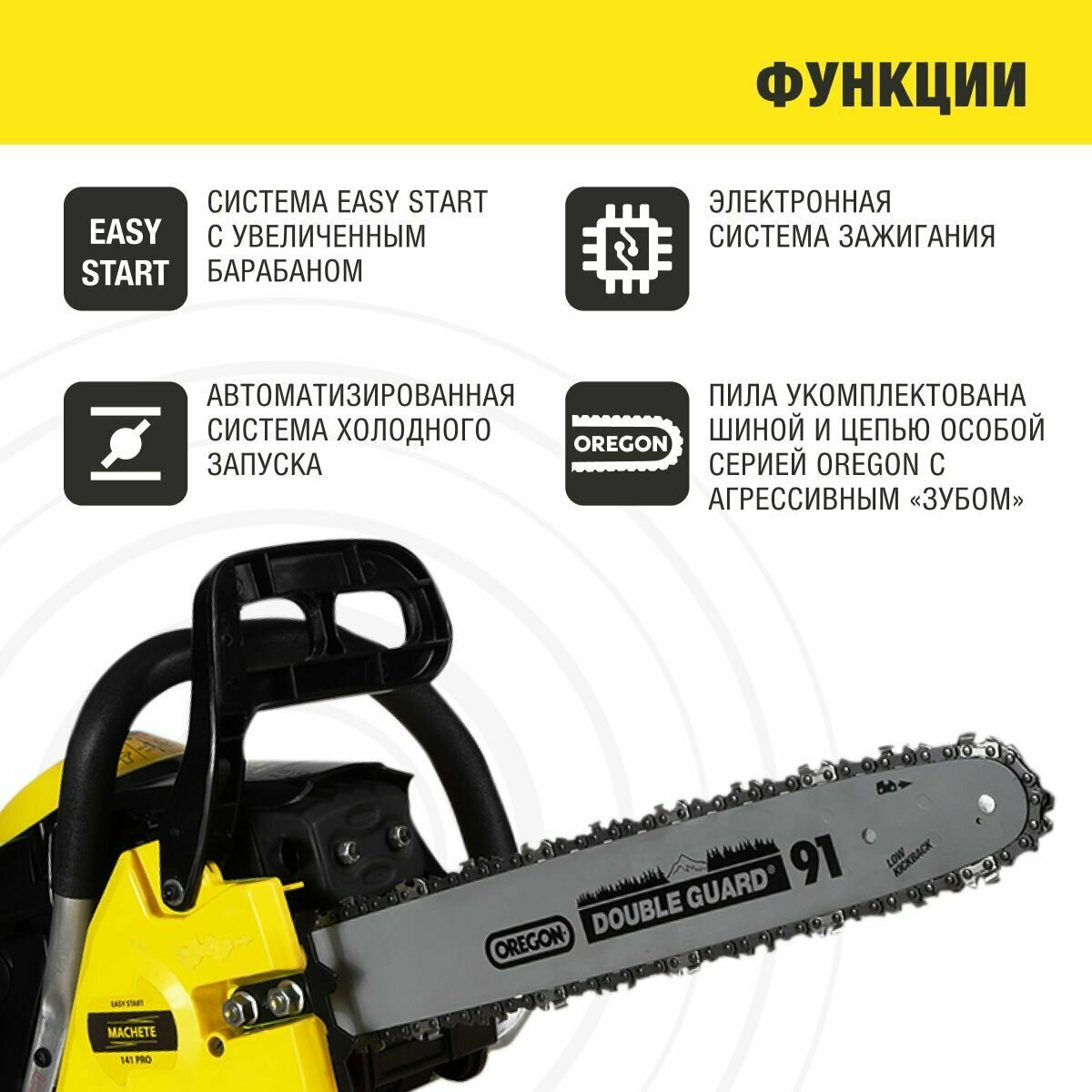 Цепная пила (бенз) 41см3, 40см MACHETE 141 PRO интересное: