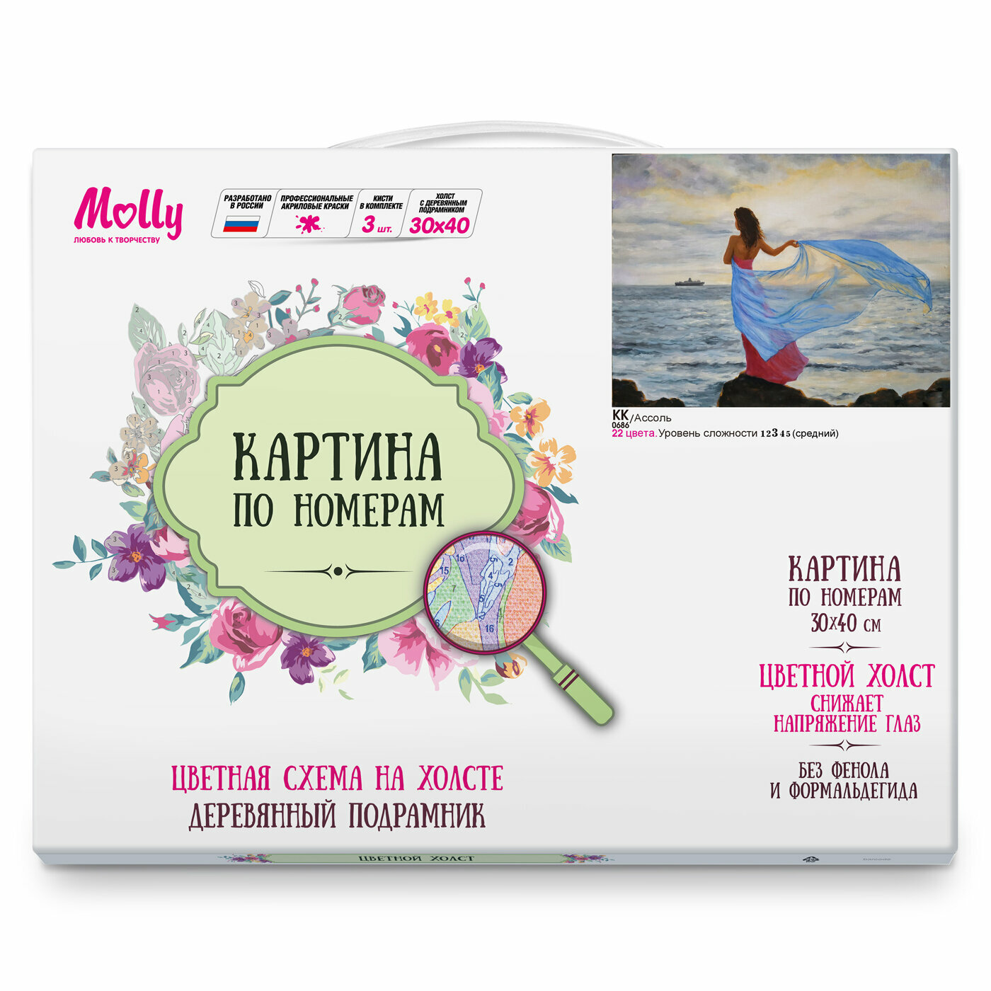 Ниже Вы можете прочитать отзывы на Картина по номерам с цветной схемой Molly Ассоль 22 цвета 30х40 см, ознакомится с подробными характеристиками, посмотреть интересные обзоры и фотографии на Картина по номерам с цветной схемой Molly Ассоль 22 цвета 30х40 см.