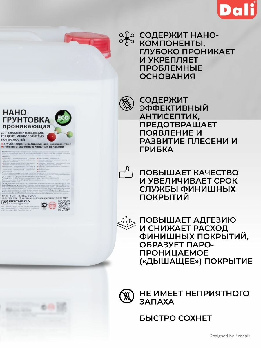 Нано-грунтовка Dali, глубокопроникающая, акриловая, 10 л