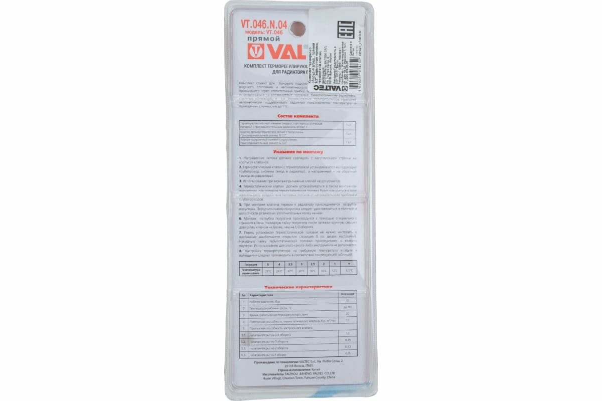 Клапан термостатический VALTEC Терморегулирующий комплект для радиатора, прям. 1/2" (термоголовка, клапаны) VT.046.N.04