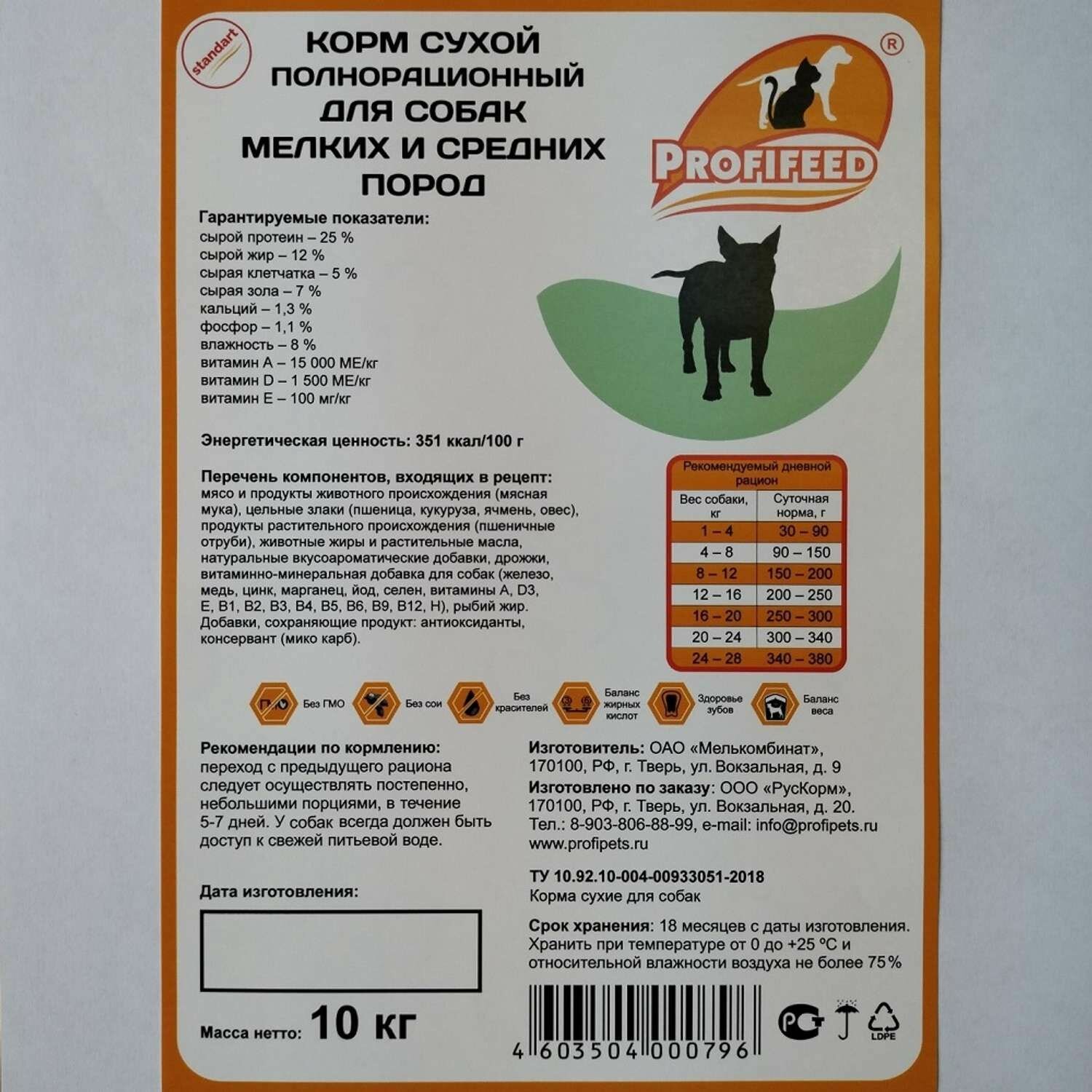 Корм сухой "Profifeed" для собак мелких и средних пород 10кг интересное:
