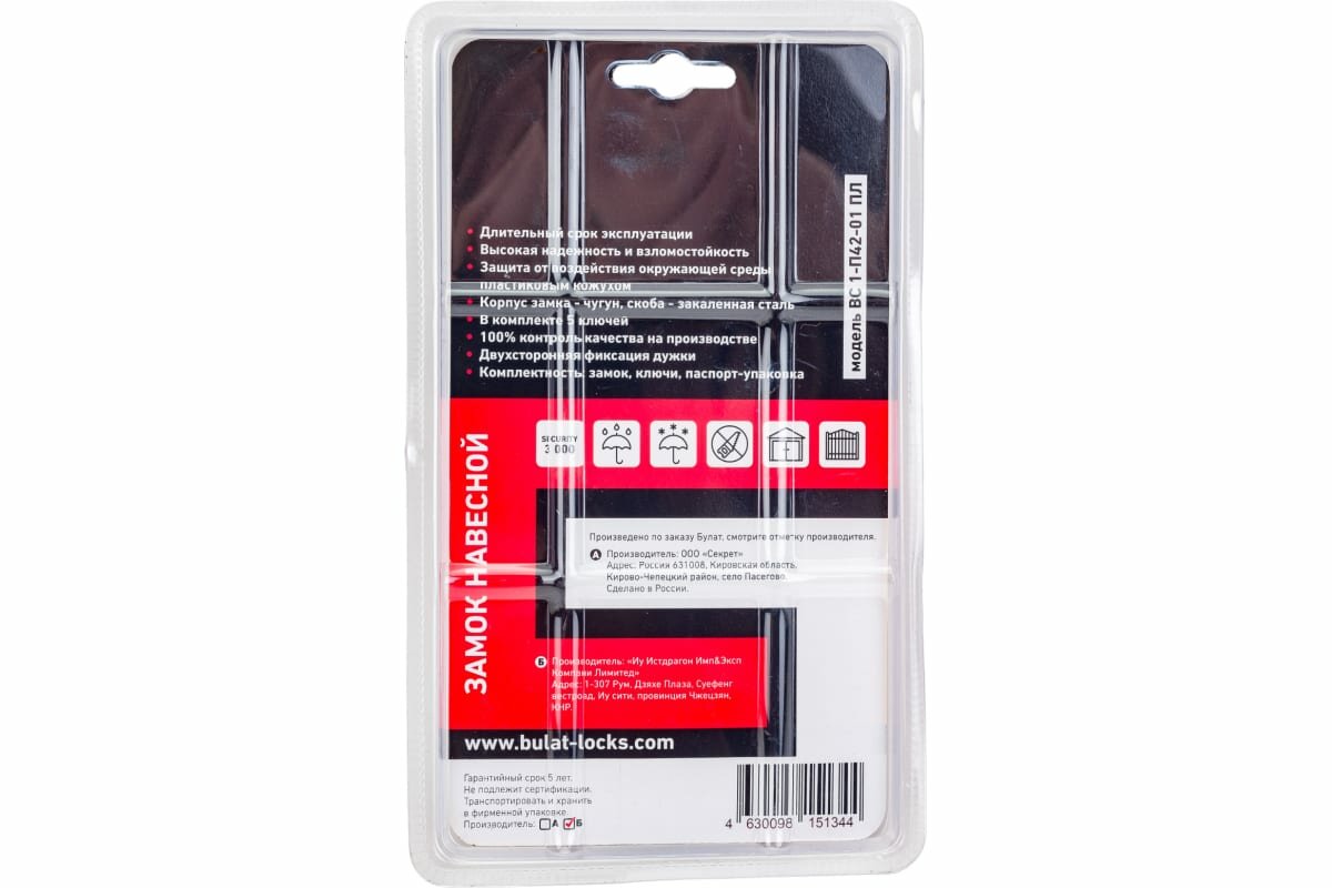 Замок навесной булат ВС 1-П42-01 ПЛ 5кл d8мм интересное: