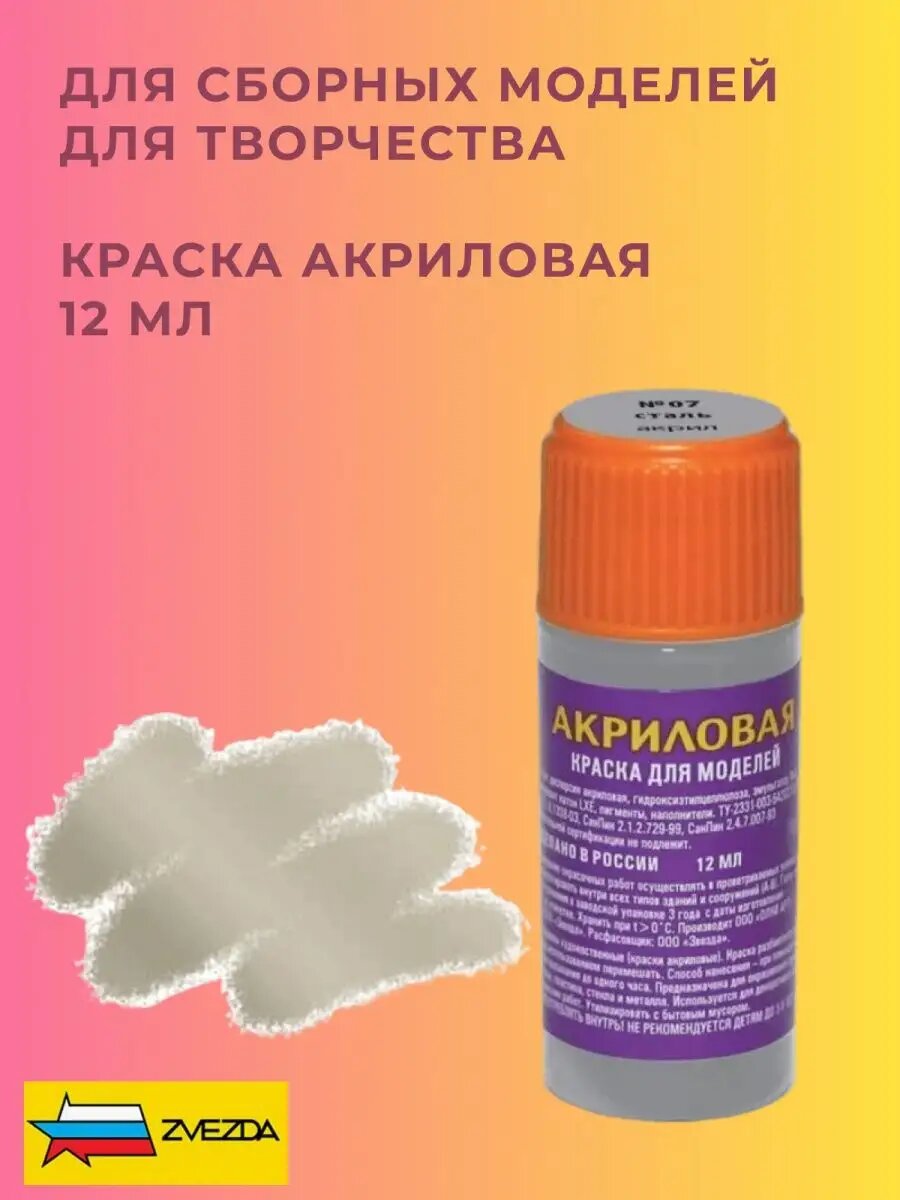 СохранитьКраска для окрашивания моделей стальная 12 мл, 07-АКР, Звезда интересное: