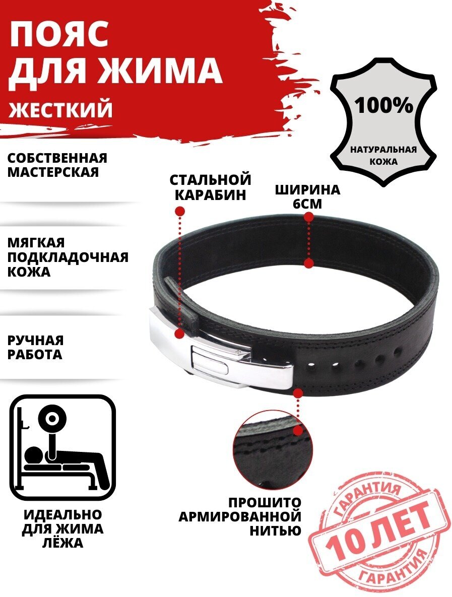 Пояс атлетический повышенной жесткости для пауэрлифтинга с карабином из натуральной кожи XL черный