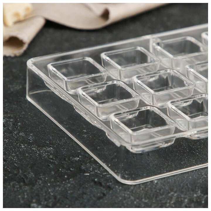 Форма для шоколада «Квадрат», силикон, 8 ячеек, 22,5×11×0,3 см, цвет прозрачный