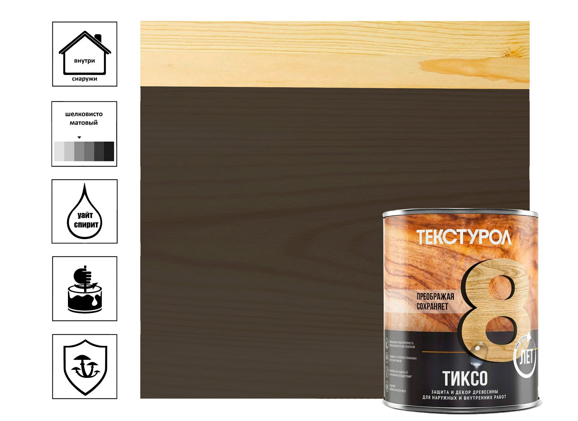 Защита и Декор Древесины Текстурол Тиксо 10л Орех Алкидная с Воском для Внутренних и Наружных Работ до 8 Лет*