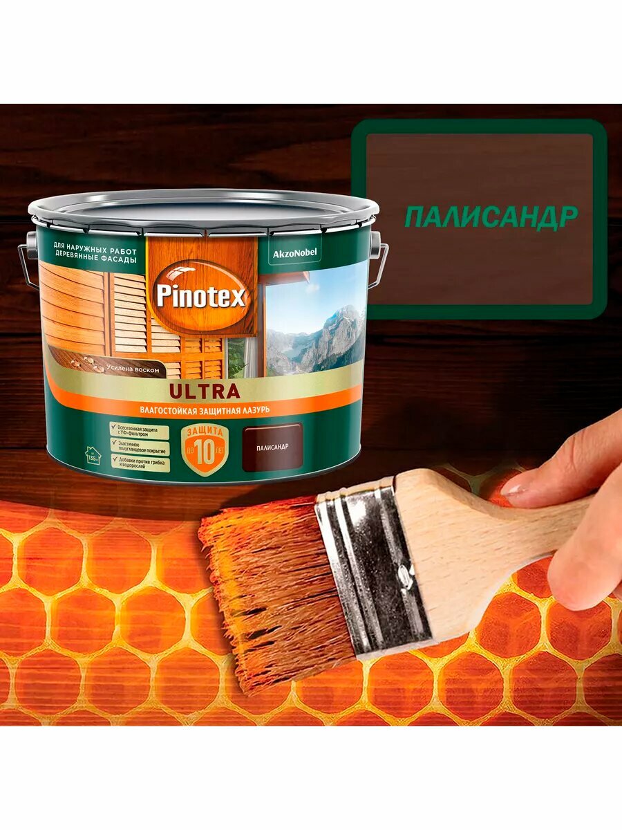 PINOTEX ULTRA лазурь защитная влагостойкая для защиты древесины до 10 лет палисандр (2,5л) new