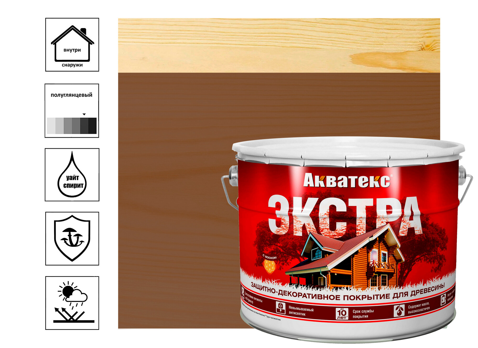 Антисептик Акватекс Экстра 9л Орех Глянцевый для Внутренних и Наружных Работ.