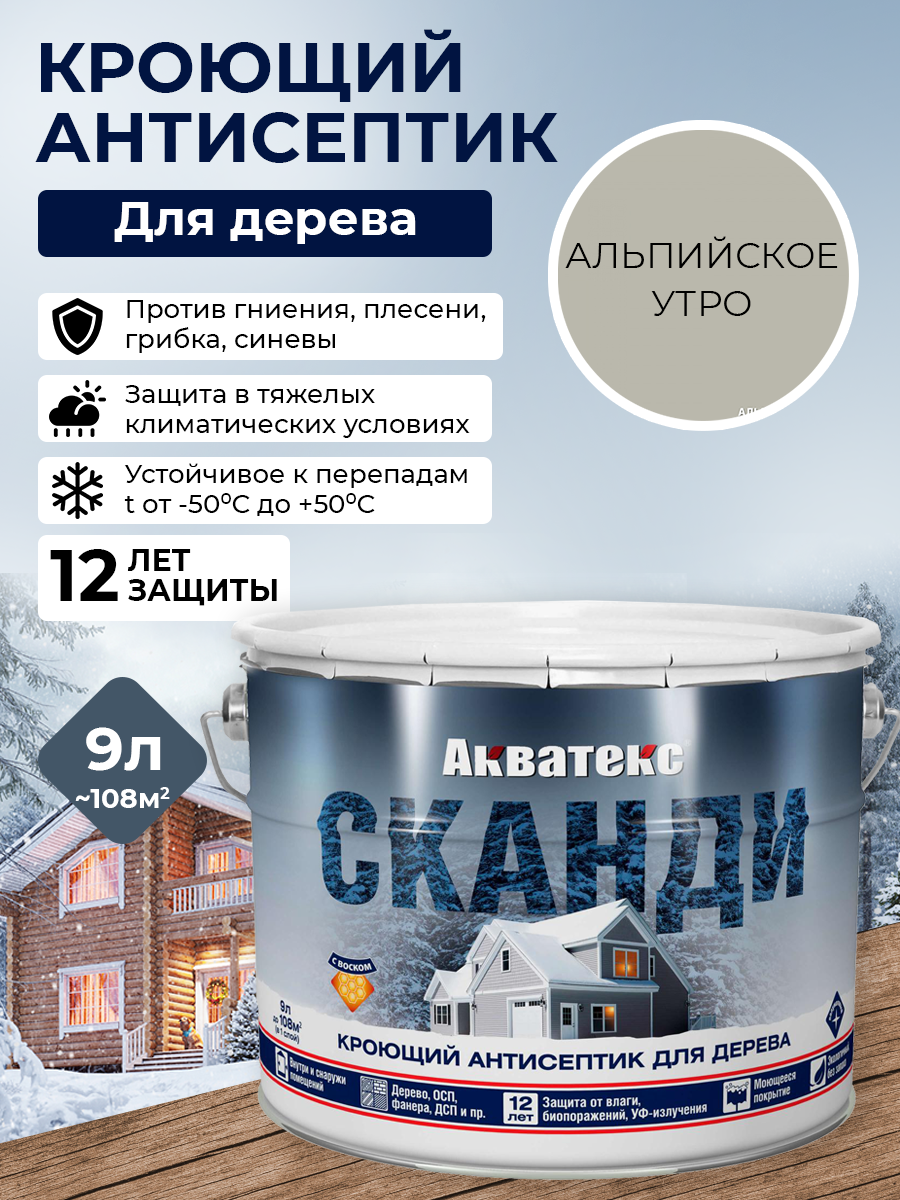 Купить Акватекс Сканди антисептик для древесины кроющий акриловый полуматовый, альпийское утро (9 л)