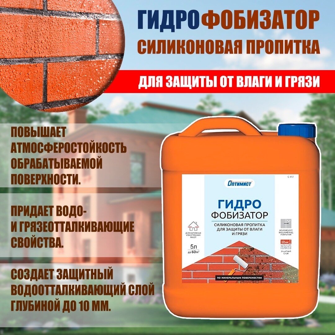 Гидрофобизатор Фасадный Оптимист С417 10л Силиконовый, Бесцветный для Защиты от Влаги и Грязи.