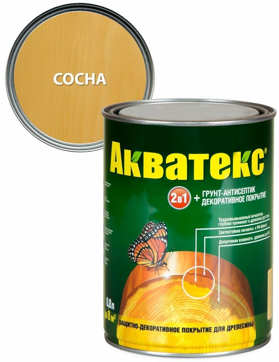 Пропитка по дереву Акватекс 2в1 защитно-декоративное покрытие для древесины Сосна 0,8л