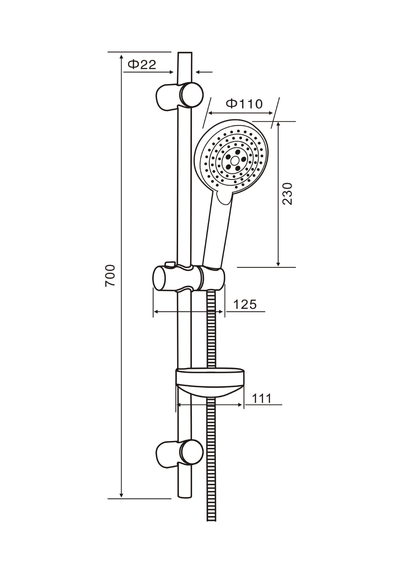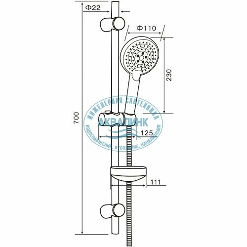 | Дополнительная информация | высота стойки для душа: 700 мм; диаметр душевой лейки: 110 мм |