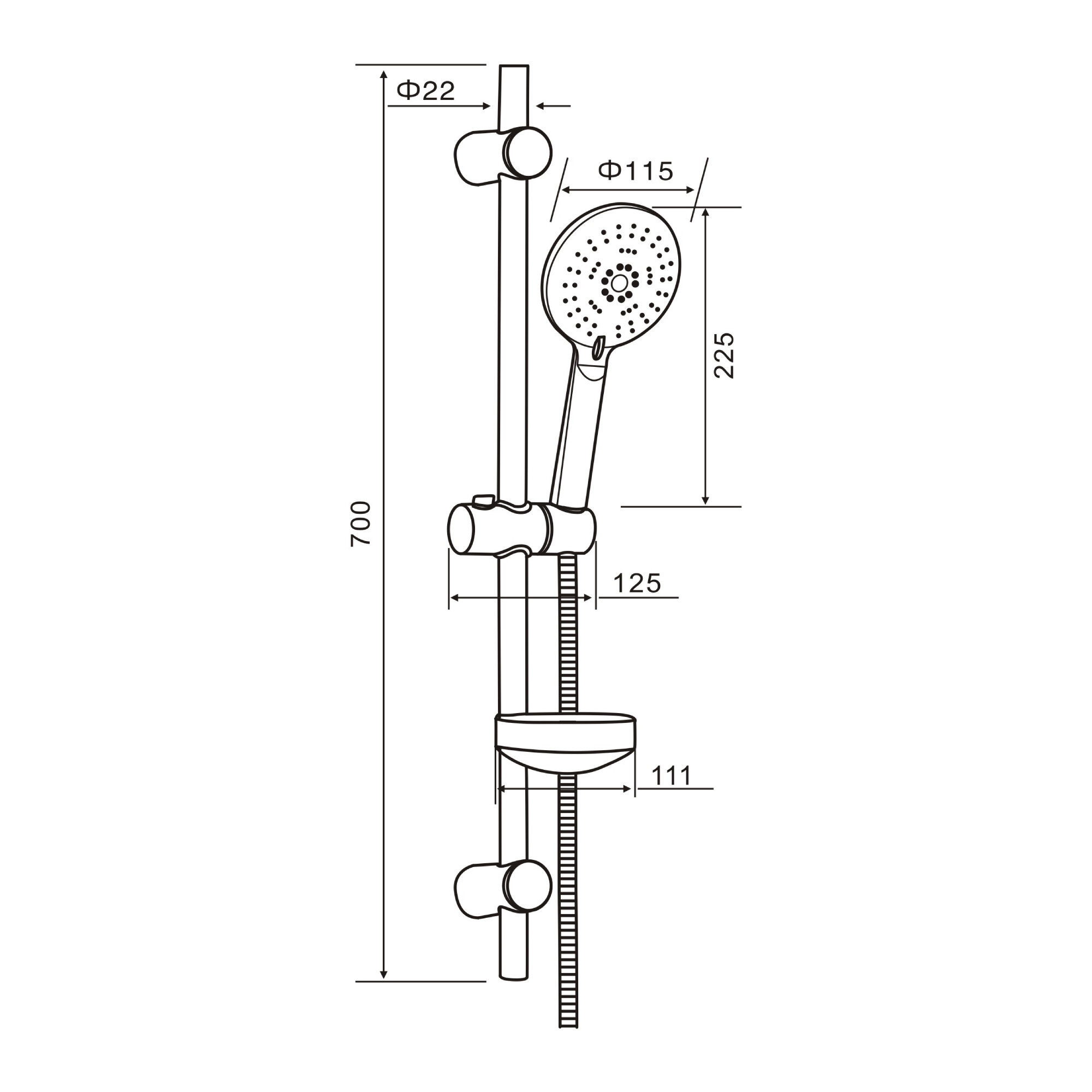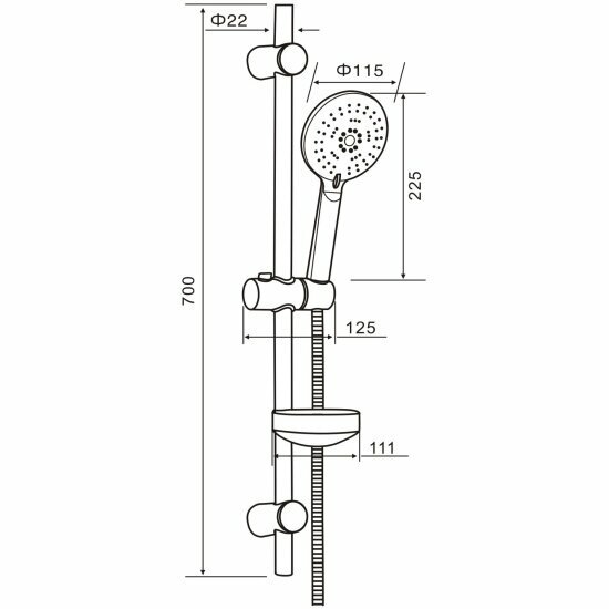 | Дополнительная информация | высота стойки для душа: 700 мм; диаметр душевой лейки: 130 мм |