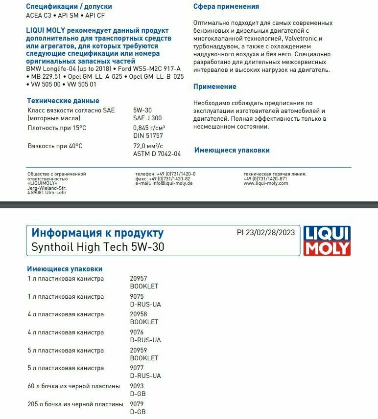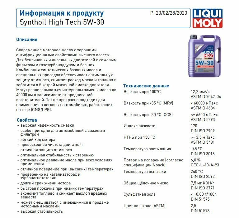 Ниже Вы можете прочитать отзывы на Liqui Moly Synthoil High Tech 5W-30 5л, ознакомится с подробными характеристиками, посмотреть интересные обзоры и фотографии на Liqui Moly Synthoil High Tech 5W-30 5л.