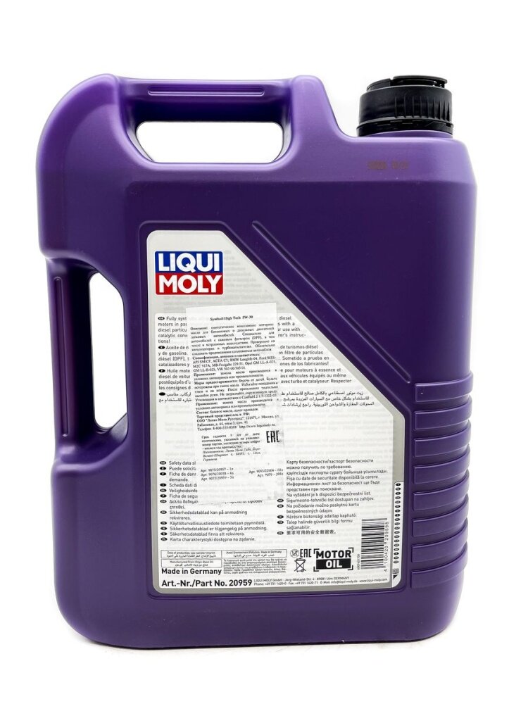 LIQUI MOLY 20959 LiquiMoly 5W30 Synthoil High Tech (5L)_масло моторное! синт.\ API SM/CF, ACEA A3/B4