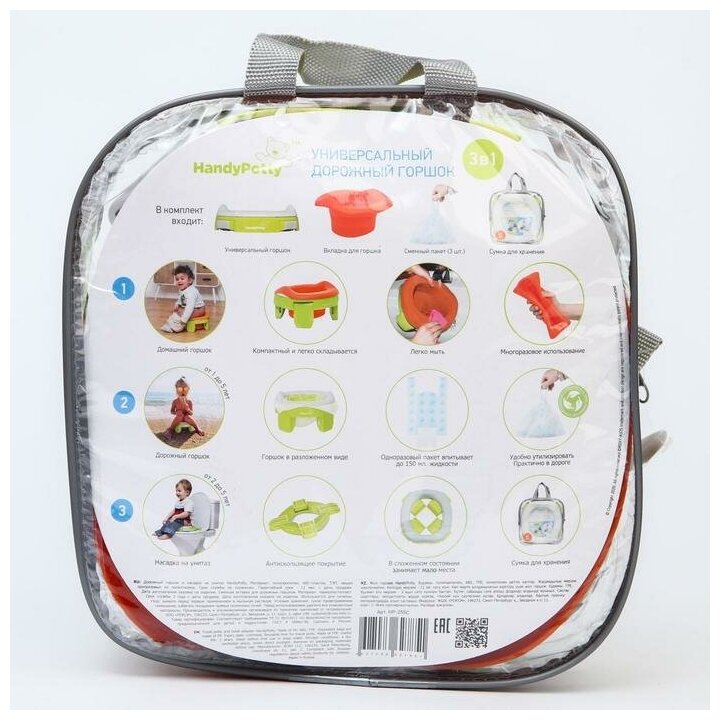 | Подробная комплектация | складной горшок, многоразовая вкладка, 3 одноразовых пакета |