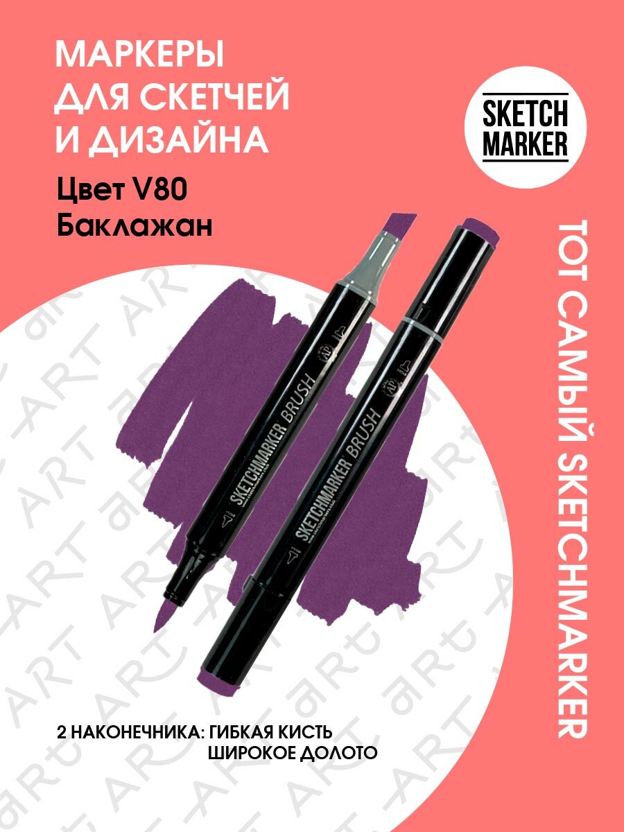 Купить Маркер Sketchmarker BRUSH V80 Eggplant (Баклажан) Два пера: кисть и долото. На спиртовой основе