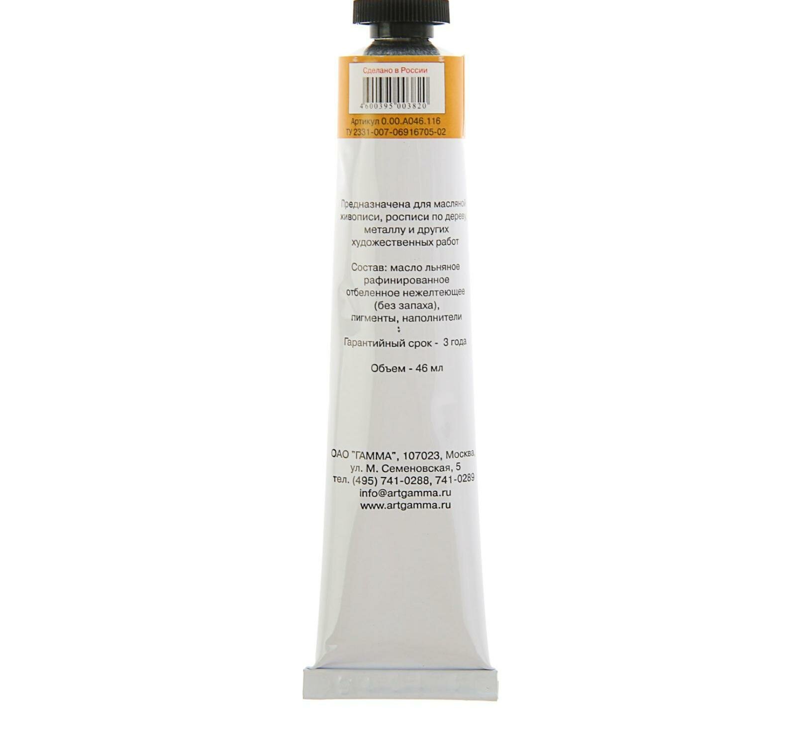 Купить Краска масляная в тубе 46 мл, Гамма "Студия", №116 охра жёлтая