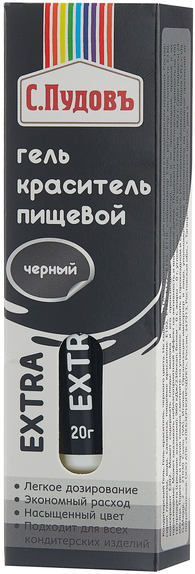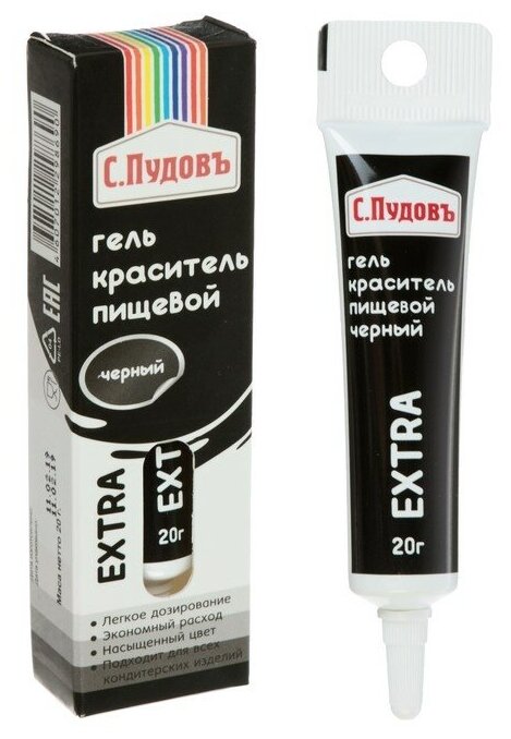 Купить Гель-краситель пищевой EXTRA Черный С.Пудовъ, Италия, тюбик/картон, 0,02 кг