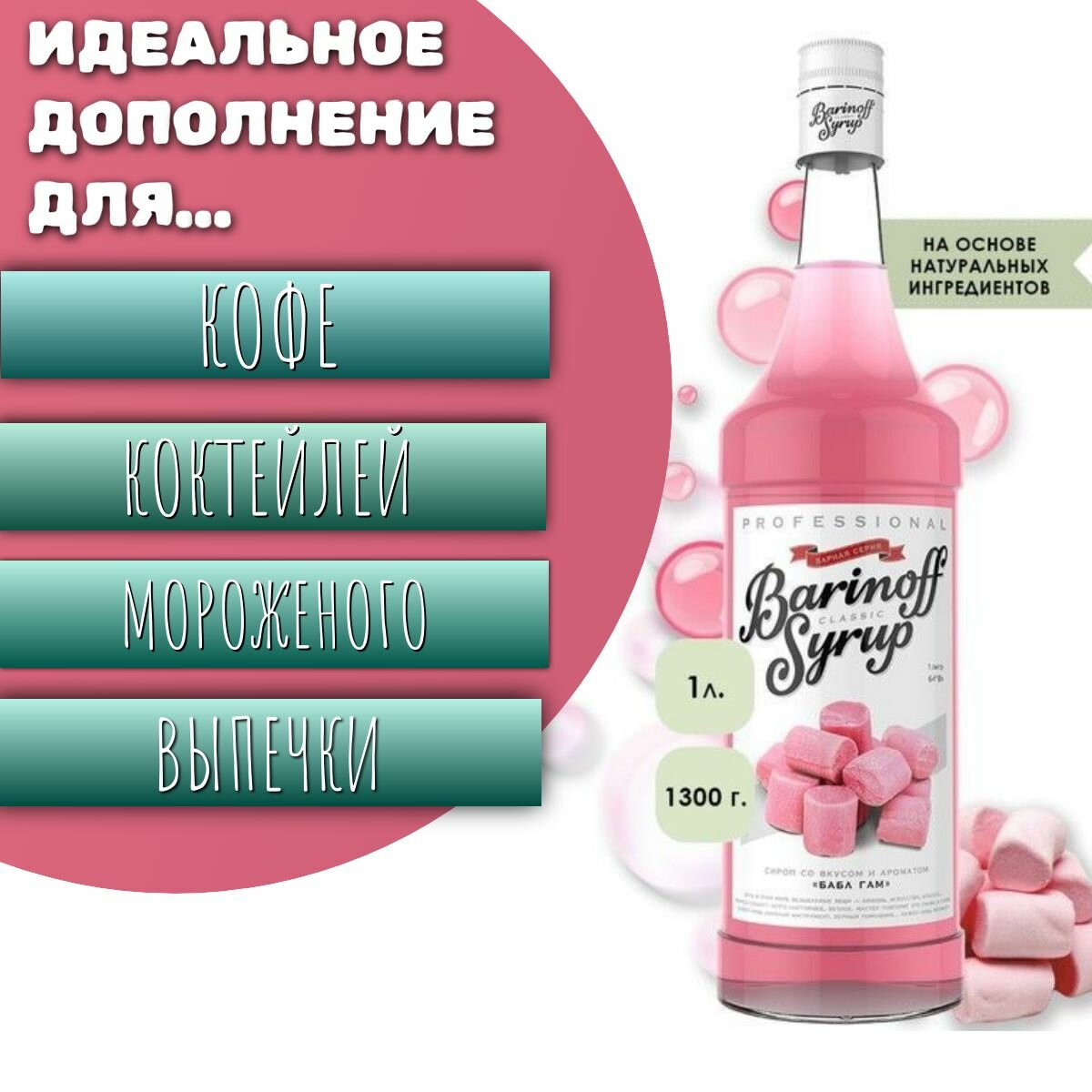 Купить Сироп Barinoff Баббл Гам, для кофе и коктейлей, 1 л