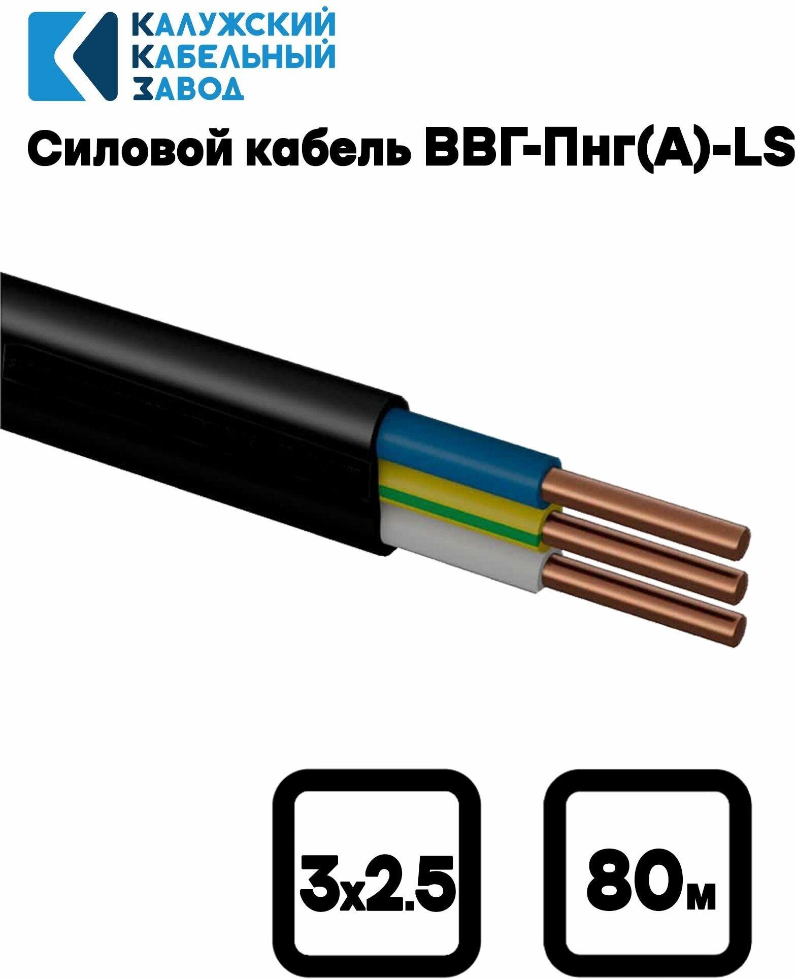 Кабель силовой ВВГ-Пнг(А)-LS калужский кабельный завод ГОСТ, 3x2.5 мм², 60 м