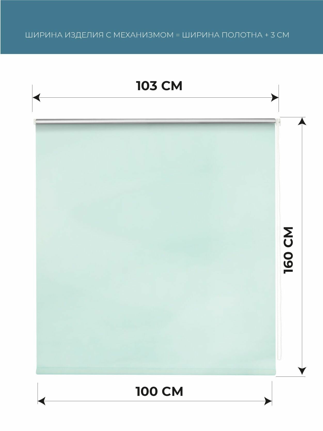 Рулонные шторы BLACKOUT / блэкаут 70 см x 160 см Свежая мята Плайн DECOFEST (Мини)