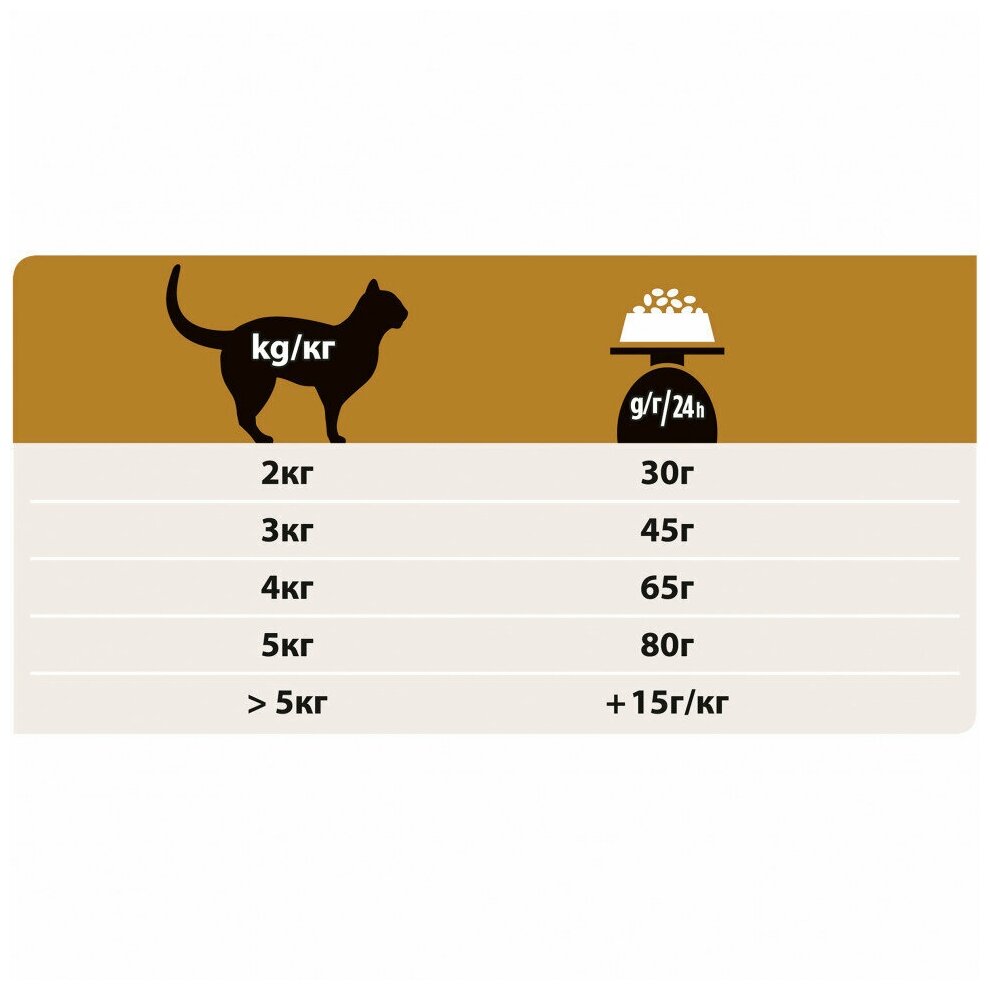 | Дополнительная информация | рекомендуемая начальная продолжительность кормления - до 6 месяцев; перед использованием корма и увеличением периода кормления сверх рекомендованного проконсультируйтесь с ветеринаром; следите, чтобы у кошки всегда была питьевая вода |