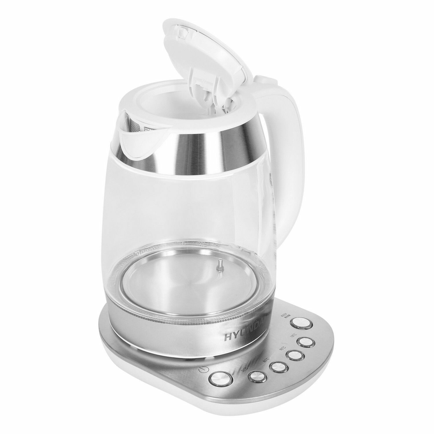 Чайник электрический HYUNDAI HYK-G4033, 2200Вт, белый и серебристый интересное: