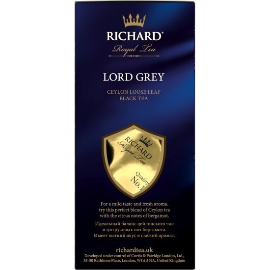 Чай черный RICHARD Lord Grey Цейлонский с ароматом бергамота и лимона, листовой, 90г