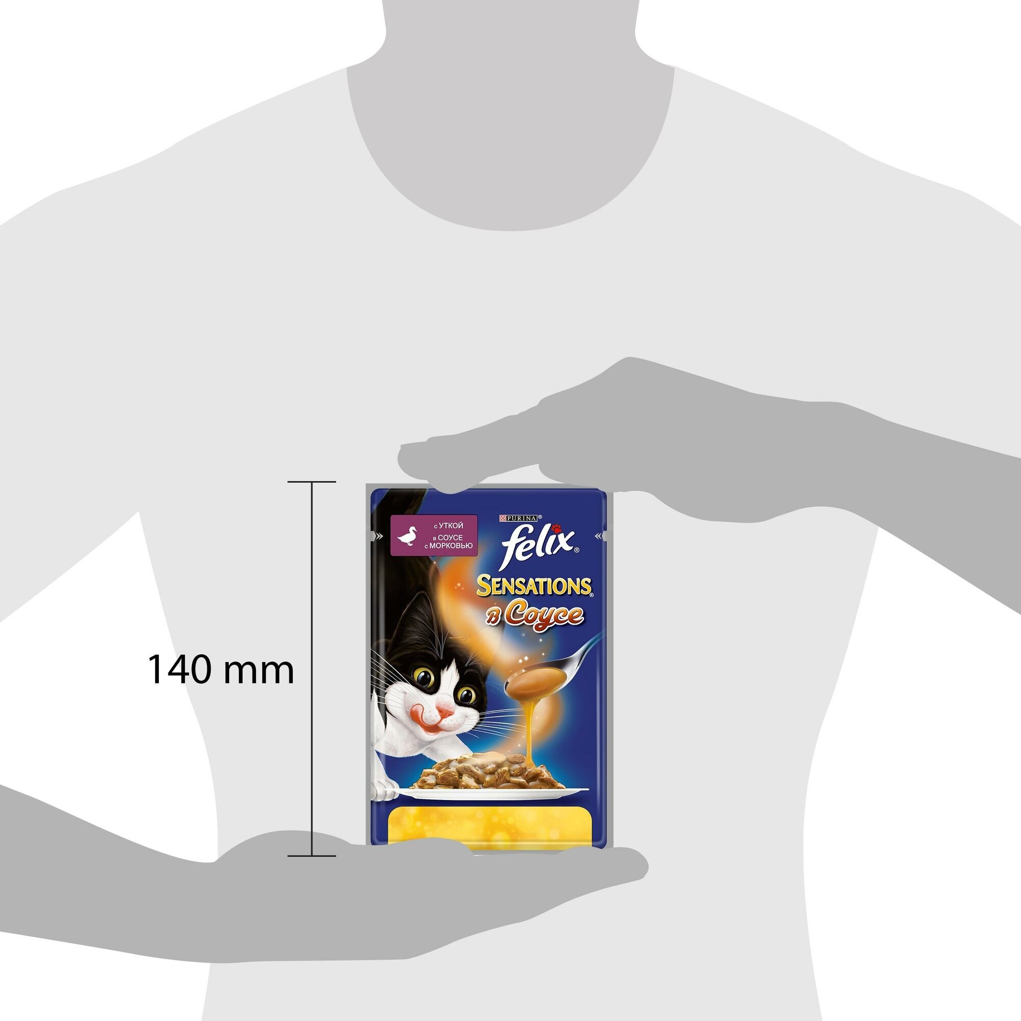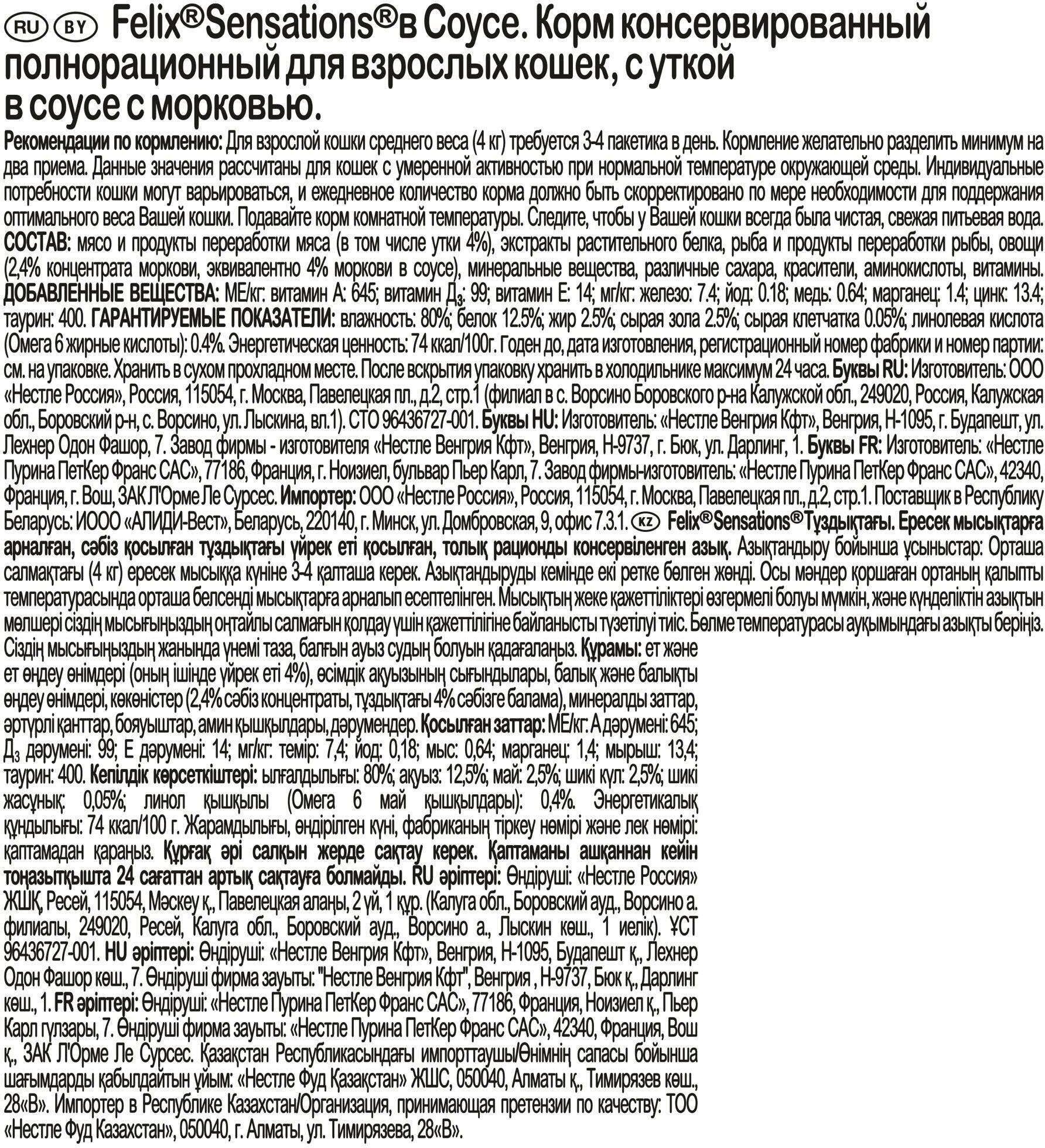 Felix Sensations влажный корм для взрослых кошек, утка с морковью в соусе, в паучах - 75 г х 26 шт