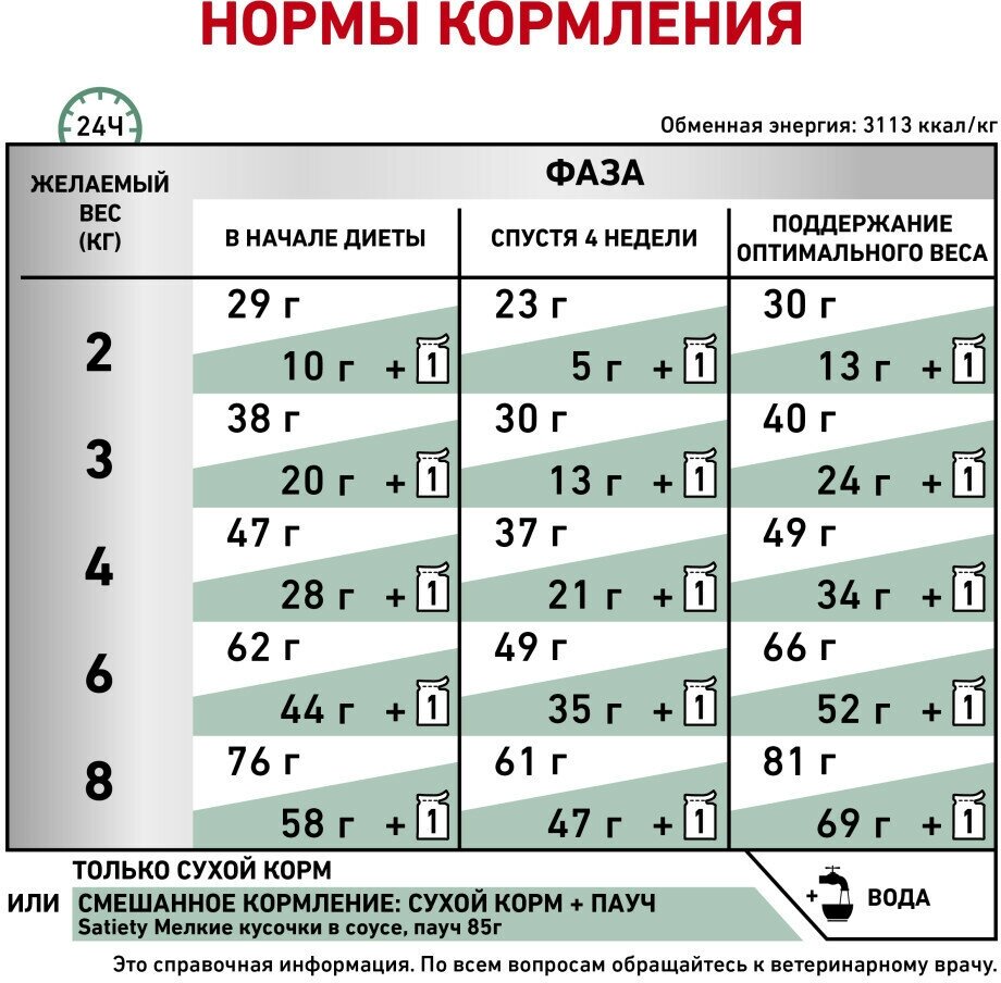 | Ветеринарная диета | при избыточном весе / при сахарном диабете |