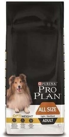 PRO PLAN ADULT DOG OPTIWEIGHT ALL SIZE LIGHT/STERILISED диетический для взрослых собак всех пород, кастрированных и стерилизованных собак с курицей и рисом (14 кг)
