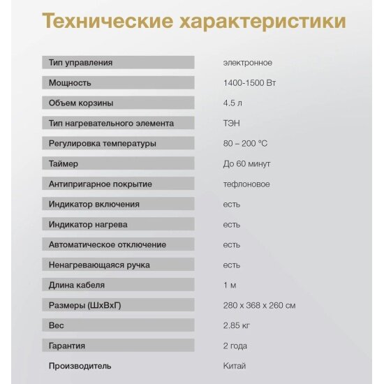 Аэрогриль Hyundai HYF-3554 белый/черный интересное: