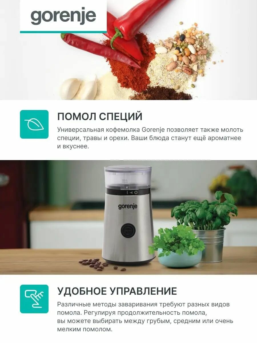 Кофемолка Gorenje SMK150E, серебристый интересное: