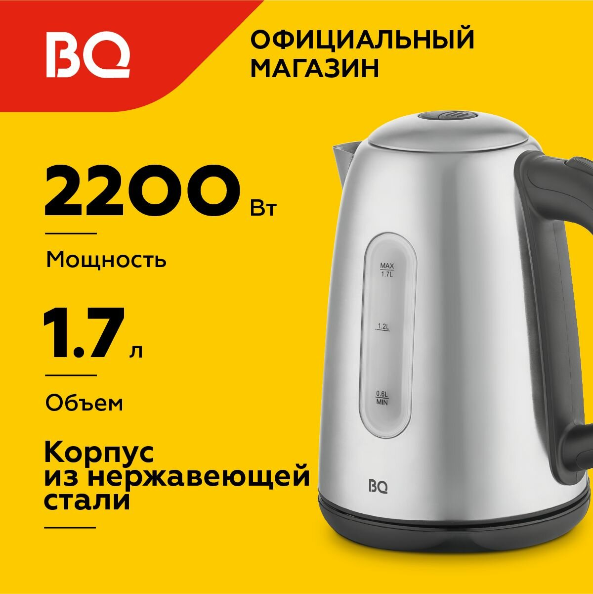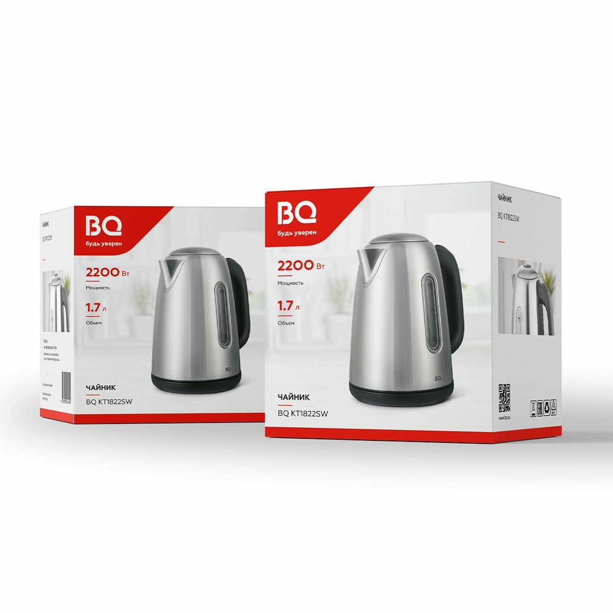 Чайник BQ Kt1822sw Сталь-ЧерныйМощность 2200Вт, Максимальный объем 1.7л, Нержавеющая сталь, Съемный