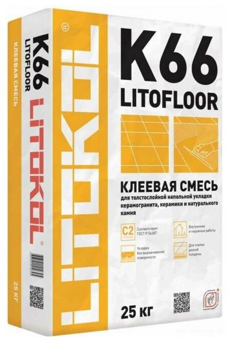 Литокол K66 Литофлор клей для керамогранита и камня (25кг) / LITOKOL K66 Litofloor клеевая смесь для керамогранита и натурального камня (25кг)