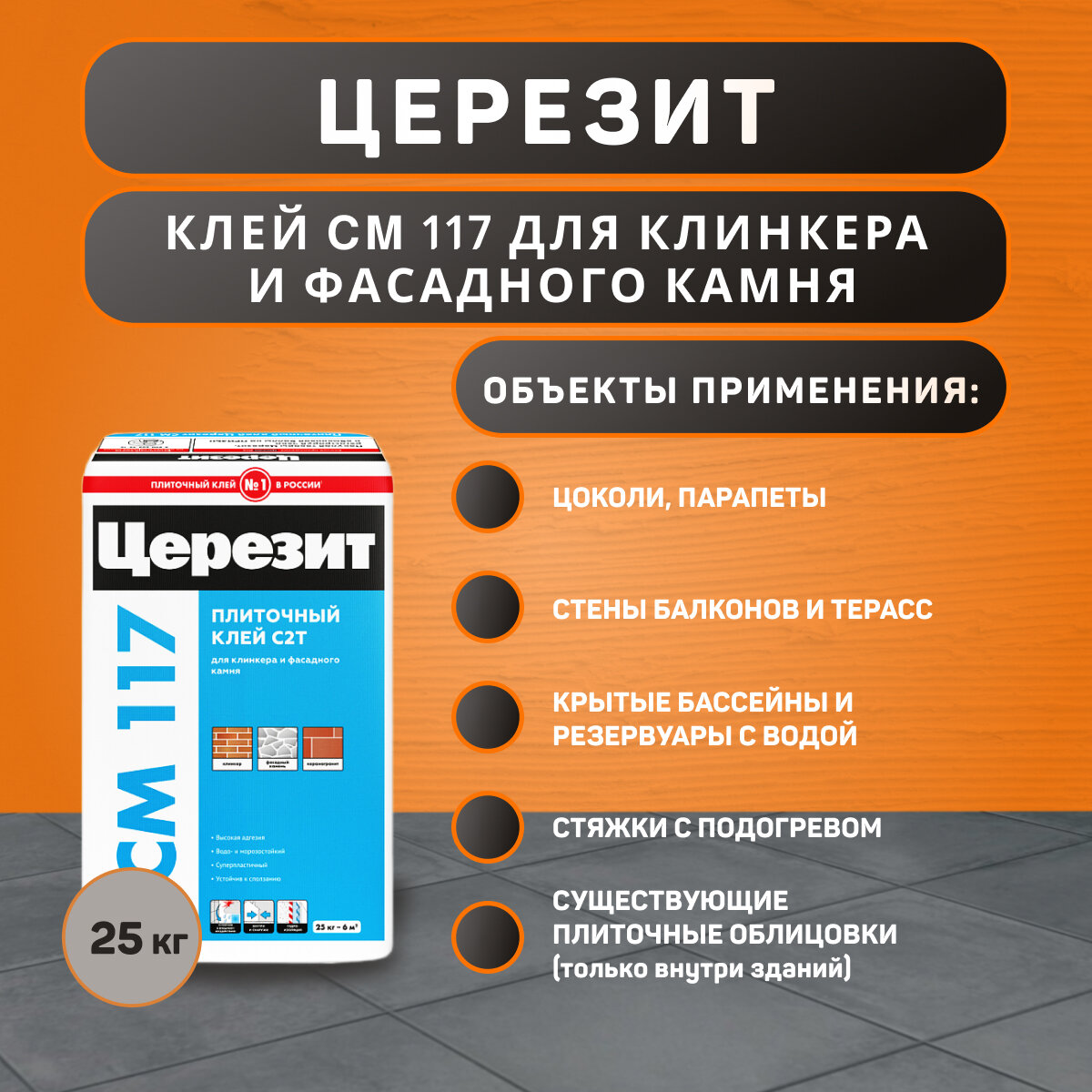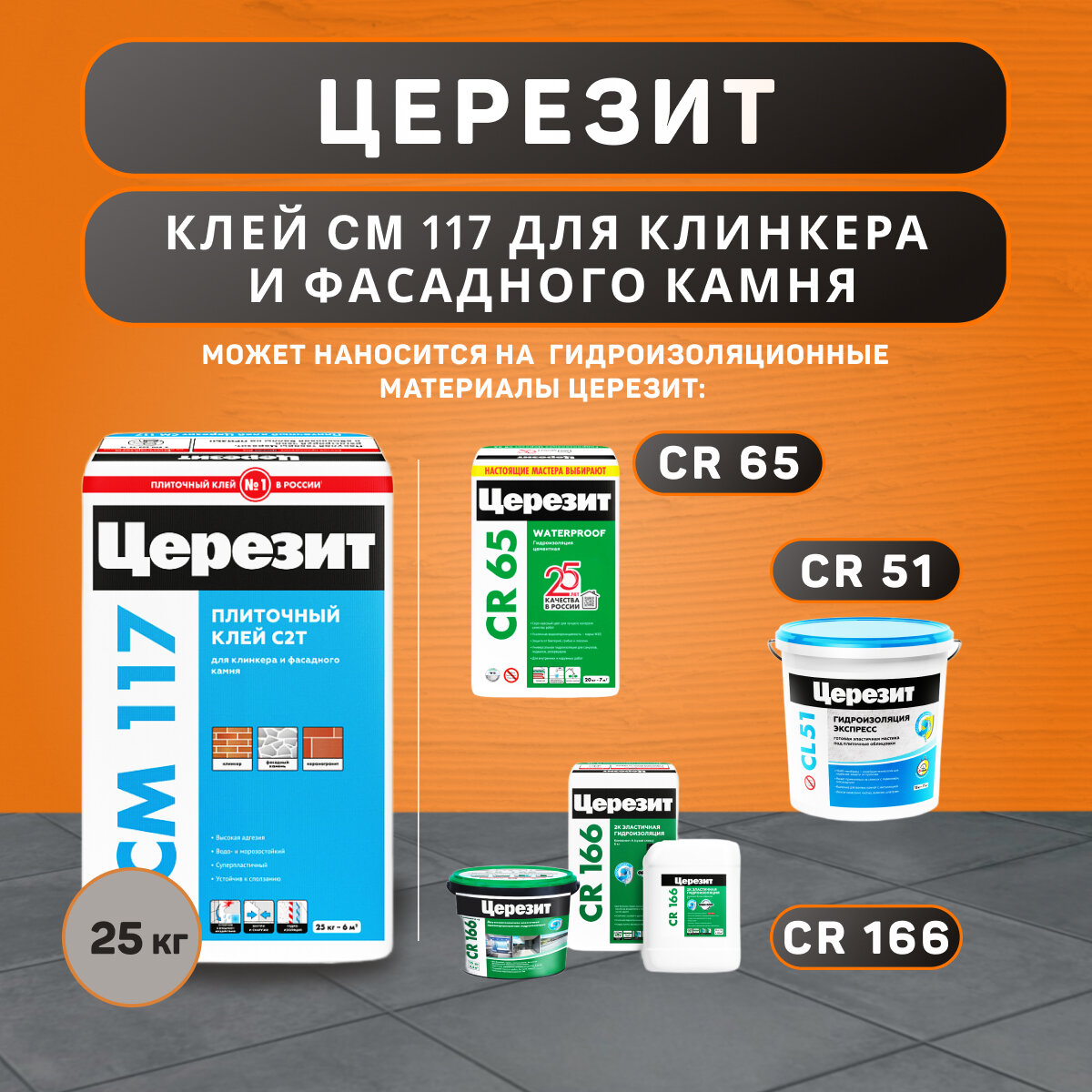 Церезит СМ-117 Эласт клей для фасадной плитки (25кг) / CERESIT CM-117 Elast клей клинкера и для фасадной плитки (25кг)